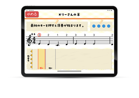 - 鍵盤演奏によってリズム感・力加減・指の分離動作などを刺激し、リハビリに対するモチベーションや巧緻性の向上が期待されます。