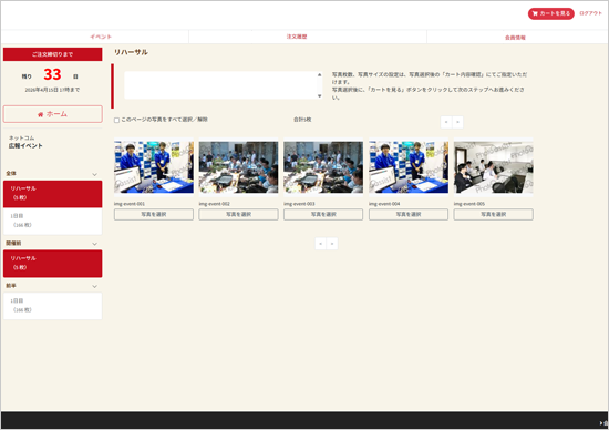 - イベント・学校行事・各種施設で撮影した写真をWeb上で閲覧・購入できるWeb写真販売システム